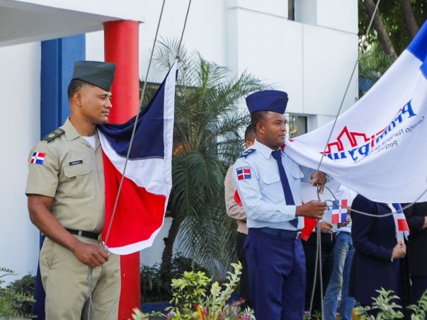 Santo Domingo.– En el marco de las actividades conmemorativas del Mes de la Patria, el Consejo Nacional de Promoción y Apoyo a la Micro, Pequeña y Mediana Empresa (Promipyme) realizó un acto de izamiento a la Bandera Nacional, en la explanada frontal de la sede principal.
